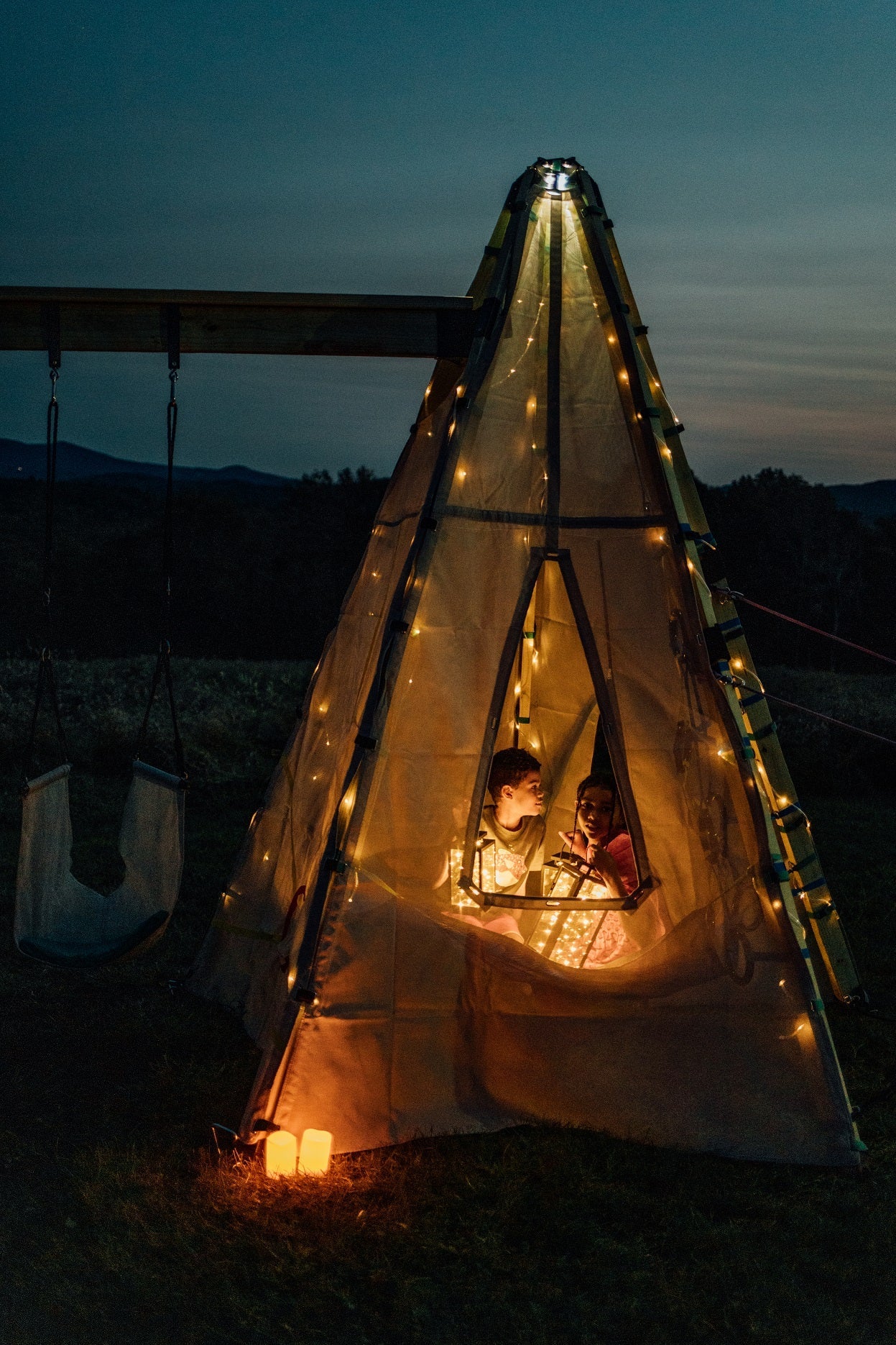 Just about anywhere! It’s an outdoor play structure, but you can use it in the backyard, at the grandparent’s, the lake house and more. We do recommend a relatively flat and soft surface, so the Bijou is safely staked to the ground and the kids can play to their heart’s content.